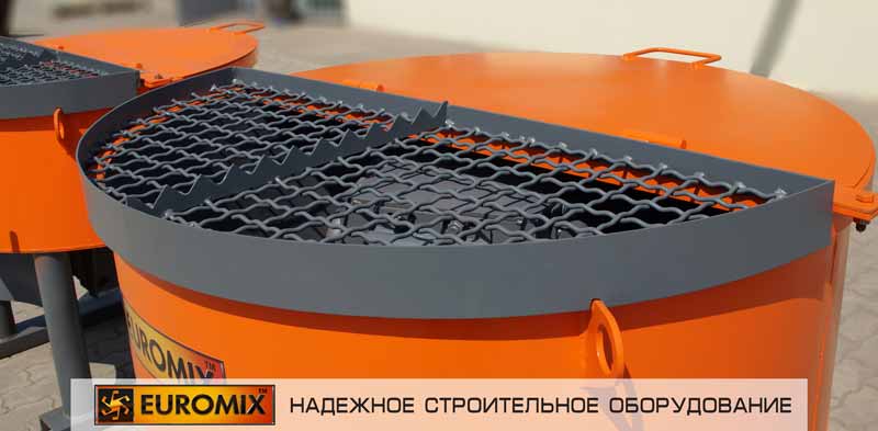 Фотоотчет по бетоносмесителям серии EUROMIX 600 (модели EUROMIX 600.200 и EUROMIX 600.300). Бетоносмесители серии EUROMIX отличает простая конструкция и хороший уровень ремонтопригодности. Агрегат удобен в эксплуатации. Применение комплектующих европейских производителей позволяет говорить о высоком уровне надежности агрегата. Комплектация бетоносмесителя с броней из износостойкой стали HARDOX (Швеция) позволяет эксплуатировать агрегат не один сезон без замены брони. Бетоносмесители EUROMIX применяются на небольших производствах строительных материалов (изделий из бетона: тротуарной плитки, стеновых блоков, изделий малых архитектурных форм).